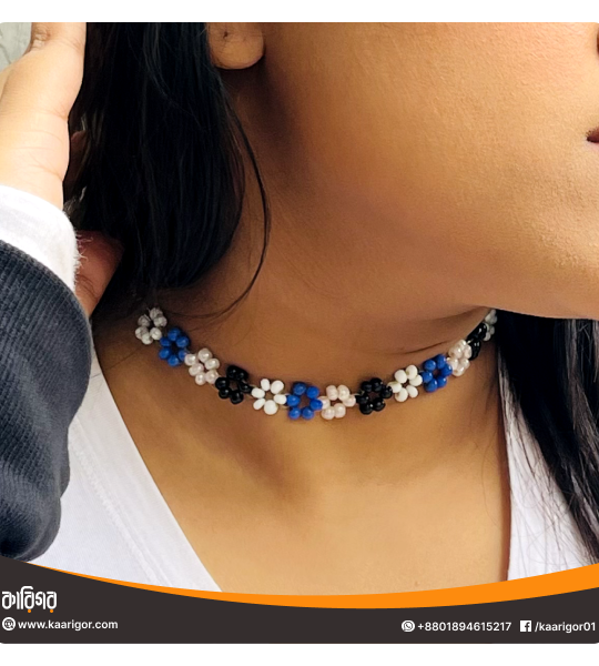 Floral Beaded Choker – floral design, adjustable, and stylish. Perfect for casual wear, parties, or gifting!